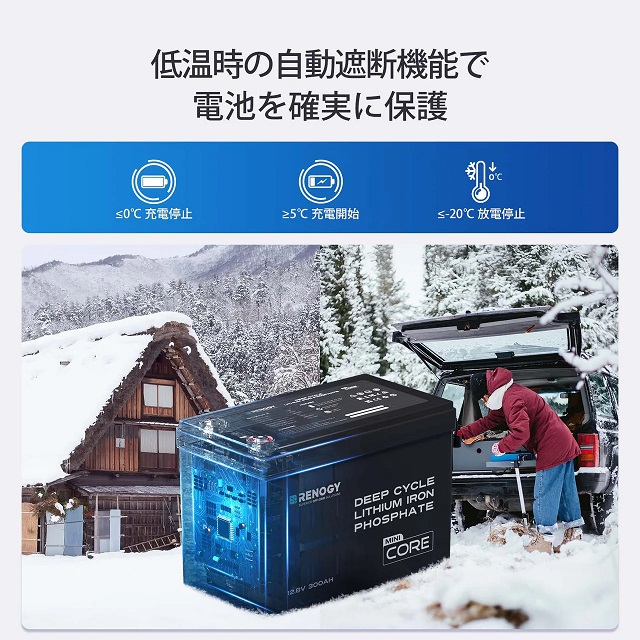 【低温遮断機能付き200A BMS】低温保護機能搭載で、寒冷地でも安心して使用できます。厳しい環境でも高いパフォーマンスを発揮します。