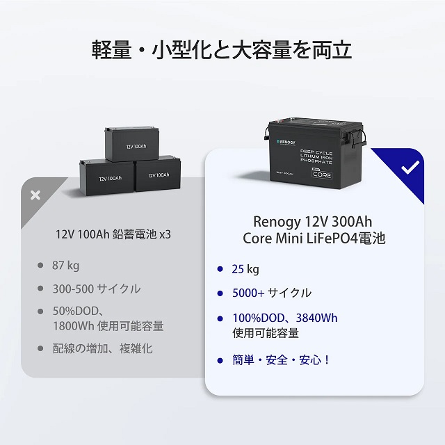 12V 300Ah Coreシリーズ Mini リン酸鉄リチウムイオンバッテリー